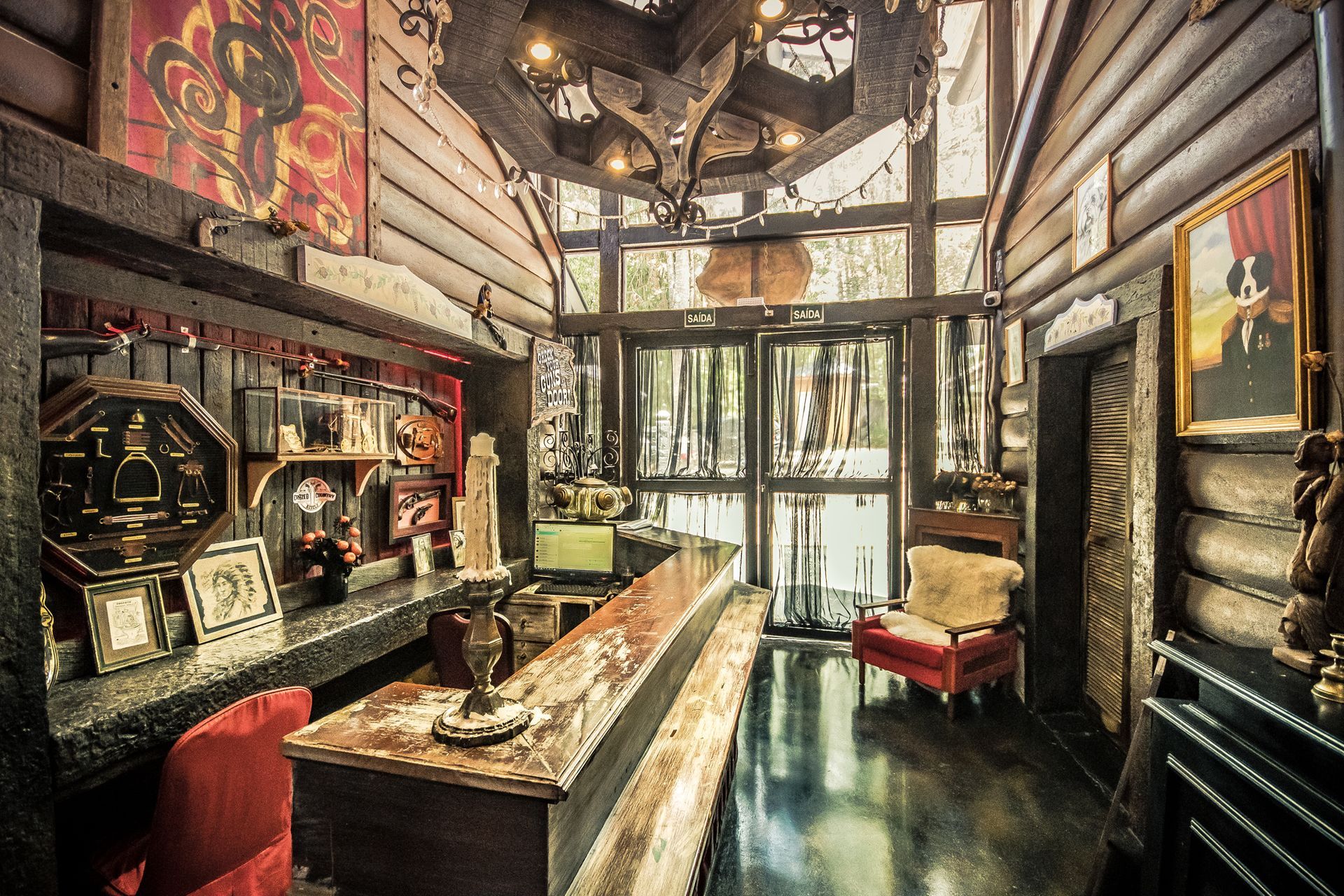 Ao adentrar o ArtBBQ, você é imediatamente envolvido por uma decoração rústica e detalhada, inspirada nos saloons do Velho Oeste. Cada elemento, desde a arquitetura até os objetos decorativos, foi cuidadosamente escolhido para criar uma atmosfera autêntica e imersiva.